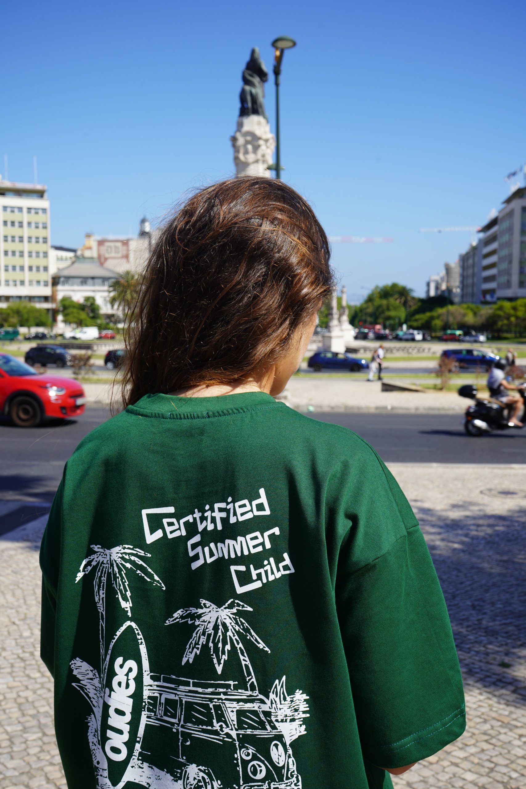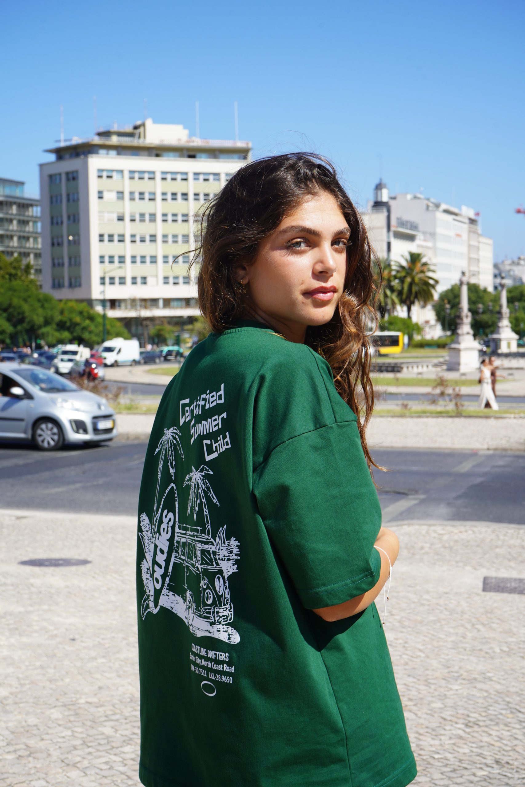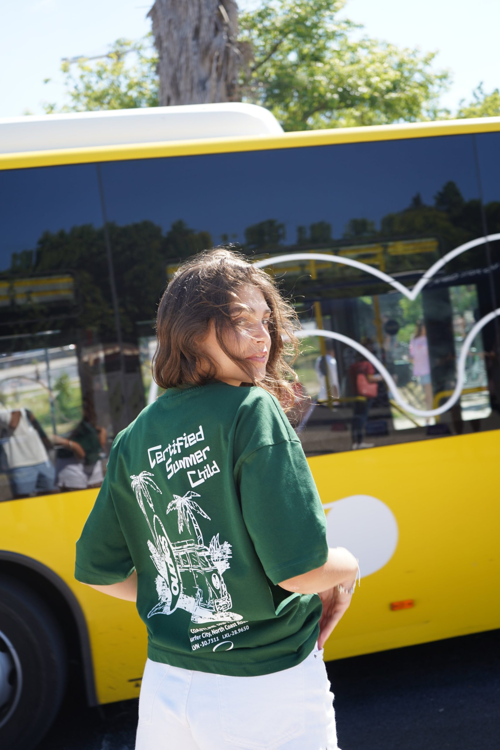 The Certified Summer Child Tee is your official badge of endless sun, salt in the air, and golden-hour freedom. With a retro beach bus, surfboards, and palm trees riding across the chest, this graphic tee doesn’t just set the vibe — it is the vibe.
