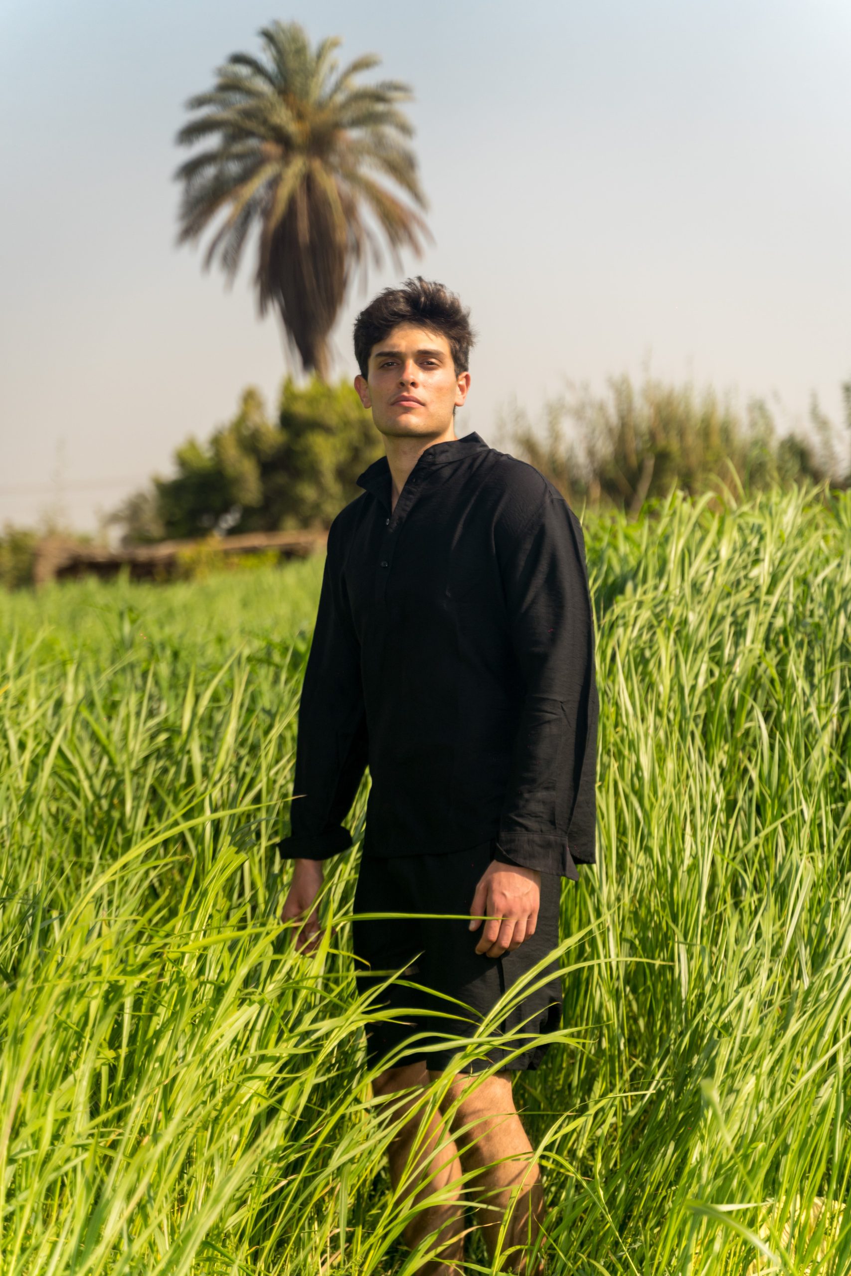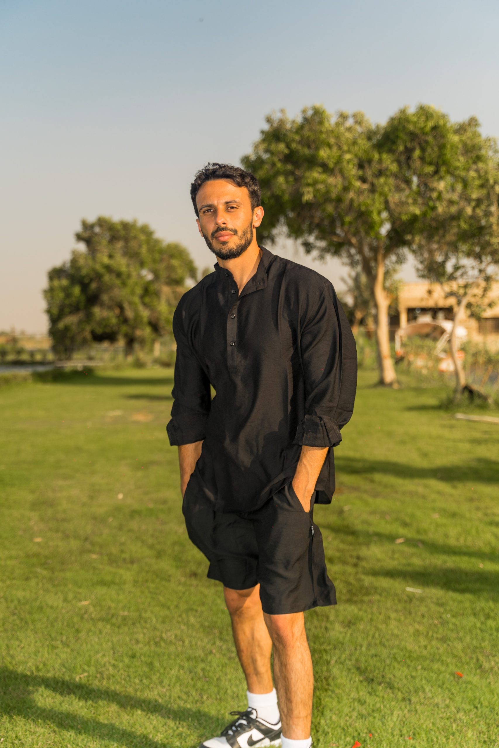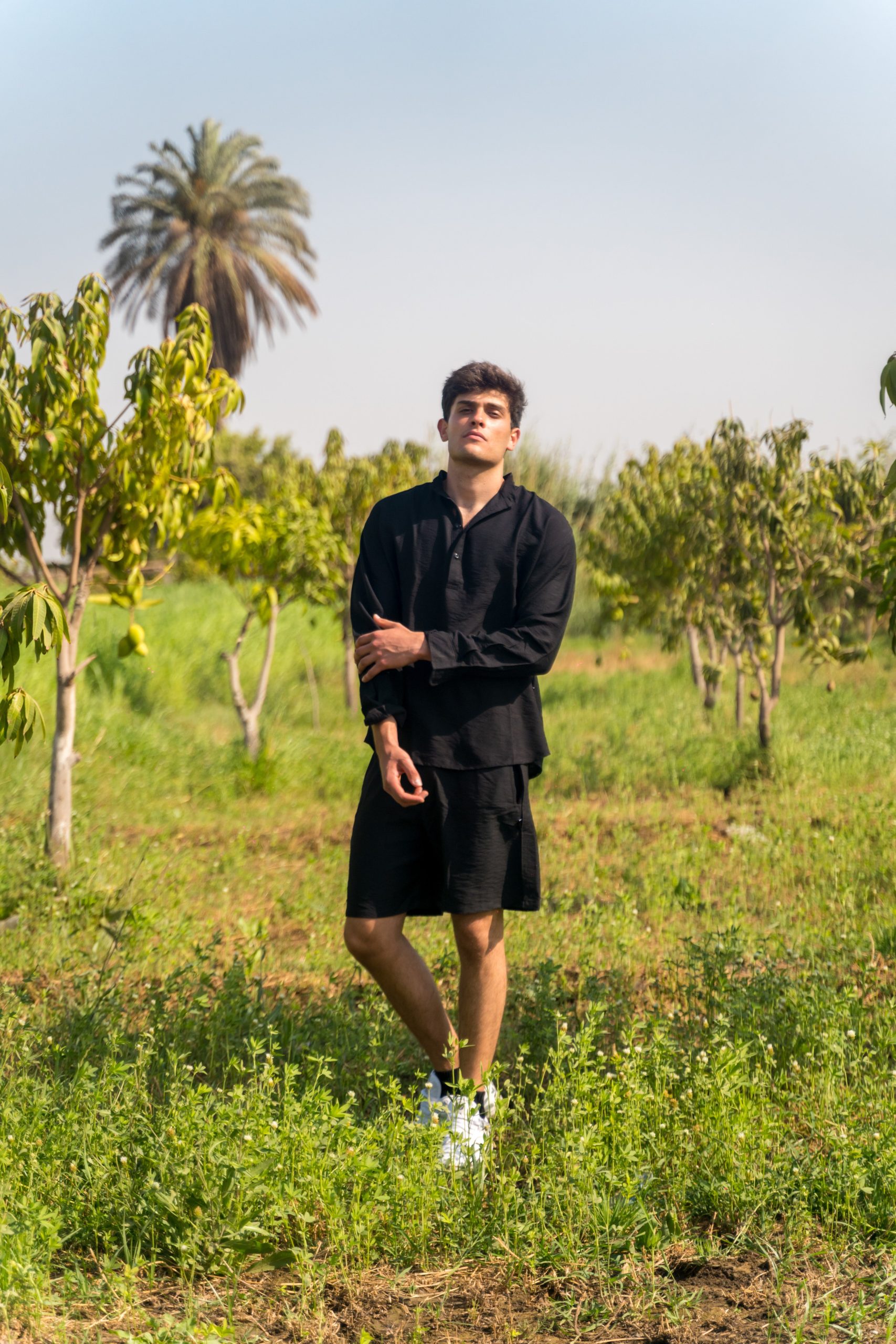 Crafted from a premium, breathable linen blend, this two-piece set features a 3-button relaxed-fit shirt and slightly elongated shorts, offering a balance of laid-back ease and tailored presence. The Black colorway grounds the set in soft neutrality — light, classic, and endlessly versatile for summer days and coastal nights.