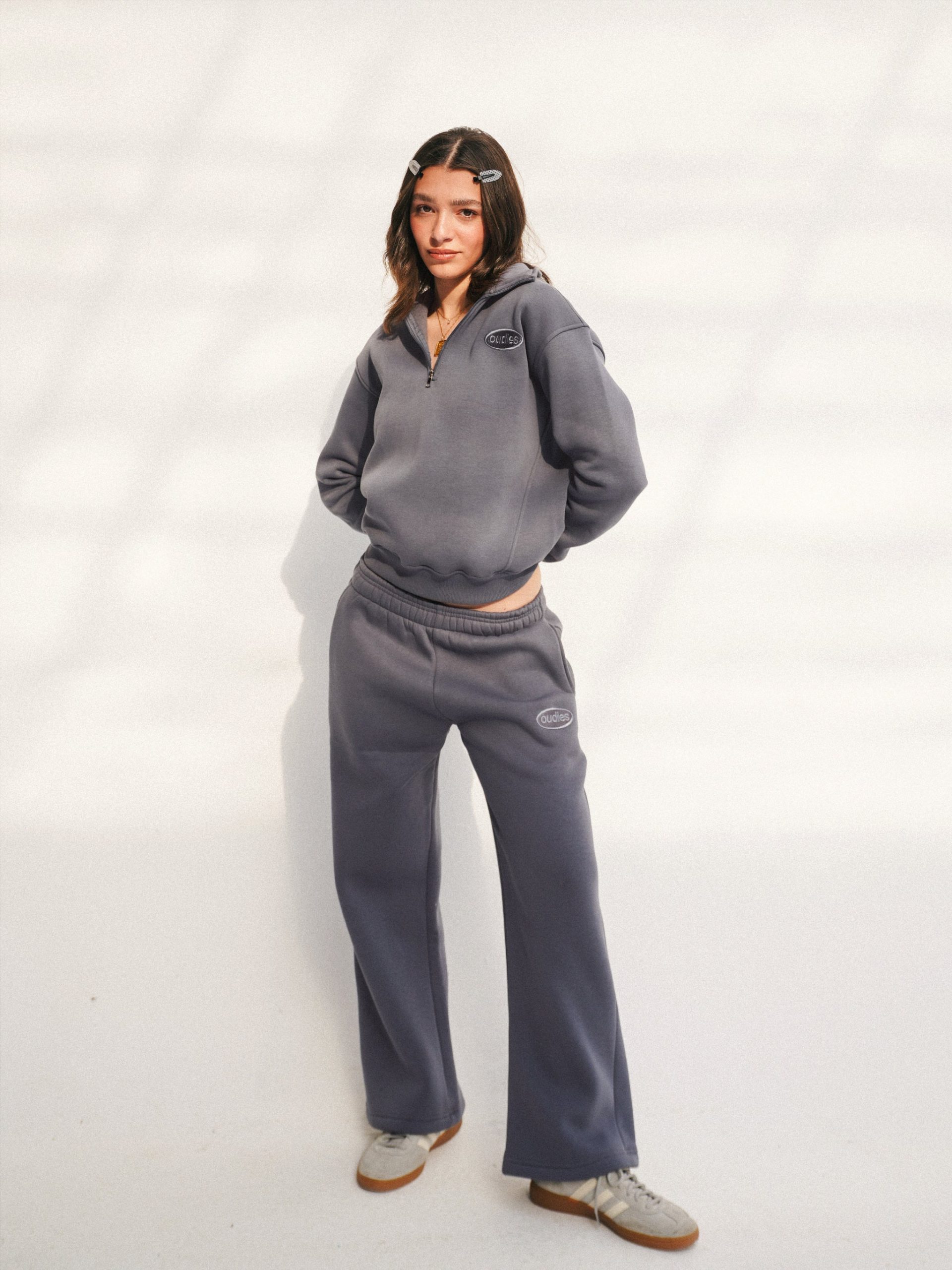 Designed as a unisex piece, they pair effortlessly with hoodies, crewnecks, or the matching Oudies quarter zip for a complete set.